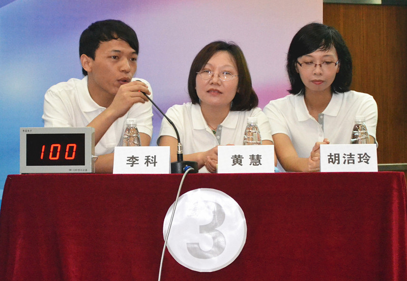 上午10:15,第二輪搶答賽環節已過去了將近1/3,順威股份所在的第三組參賽隊名次墊底。在首戰失利的情況下,面臨強勁的對手,該組參賽隊摒棄一切思想雜念,開始發起反擊。組員李科一馬當先,連連搶得先機且回答準確無誤,瞬間將差距縮小。第二輪搶答賽結束時,第二、三組參賽隊并列第一,拉開第二名40分的距離,形成齊頭并進的良好態勢。在隨后的比賽環節,該參賽隊繼續保持領先優勢。最終,由順威股份、科順化工以及盛熙電器的辦稅員力克群雄,榮獲最強辦稅員的稱號。