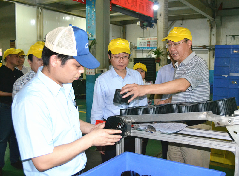 交流會結束后,在順威股份副總裁/風葉事業(yè)部總經(jīng)理龍仕鈞先生、順德模具分公司副總經(jīng)理龐利彬女士等領導的陪同下,潘朝暉市長一行饒有興致地參觀了公司的技術中心和產(chǎn)品生產(chǎn)車間。參觀期間,潘朝暉市長對我公司自主研發(fā)生產(chǎn)的多項產(chǎn)品進行了交流并給予了高度稱贊。
