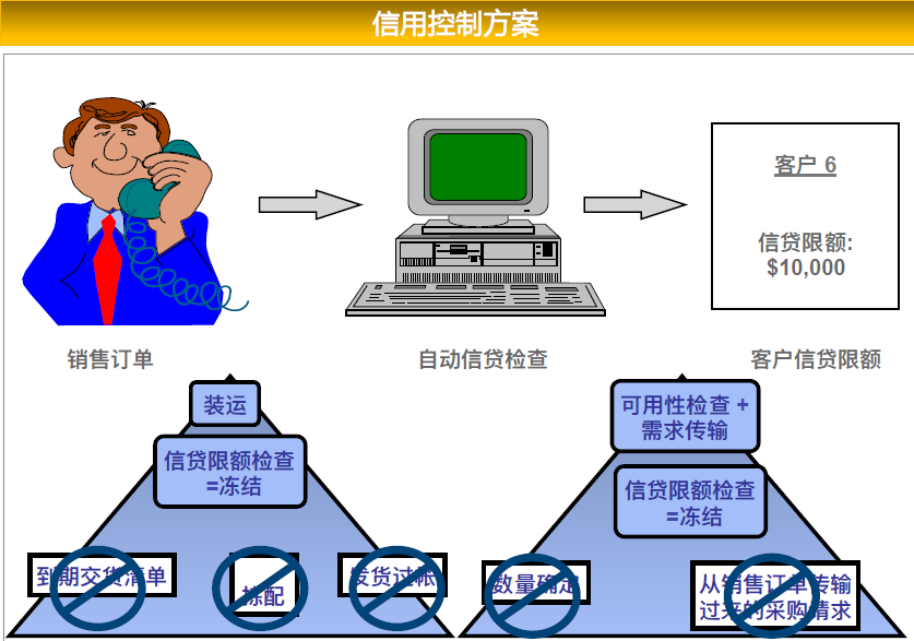 SAP系統(tǒng)提供完善的客戶信用額度控制功能,通過(guò)定義信貸控制范圍我們可以把信用控制分配到整個(gè)集團(tuán)或是一個(gè)公司代碼下,比如我們可以整個(gè)集團(tuán)是一個(gè)信用額度或者是某個(gè)公司代碼是一個(gè)信用額度。通過(guò)信貸控制,公司的應(yīng)收賬款風(fēng)險(xiǎn)就可以得到有效的控制,同時(shí)又不增加銷售人員的工作量。