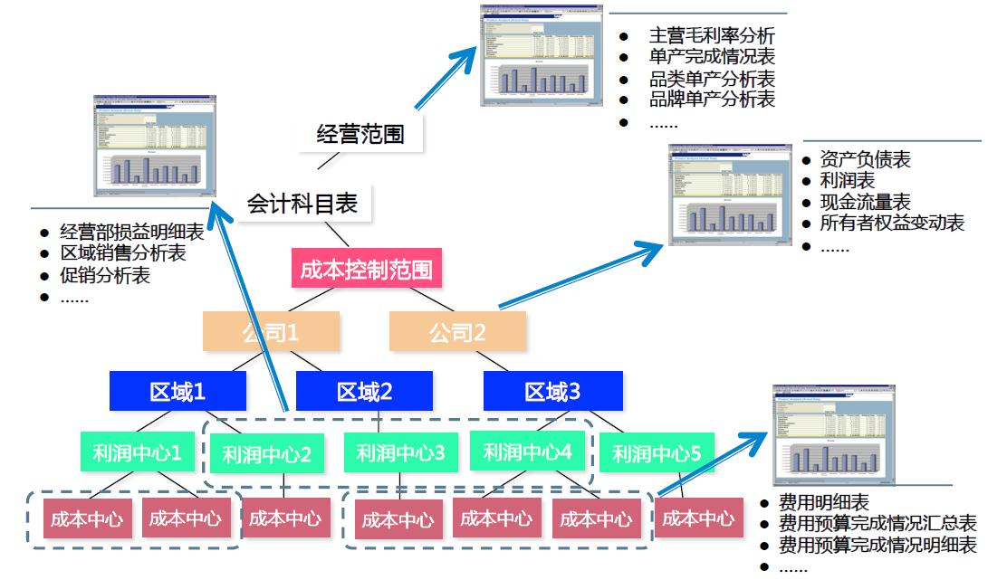 由于財(cái)務(wù)的控制規(guī)則前移,在開展業(yè)務(wù)時(shí)已經(jīng)把后期財(cái)務(wù)需要的數(shù)據(jù)錄入到系統(tǒng),月結(jié)時(shí)財(cái)務(wù)報(bào)表的數(shù)據(jù)提取就不需要大量的人工錄入。同時(shí)SAP提供多維度的財(cái)務(wù)組織架構(gòu),能靈活給出所需的報(bào)表。
