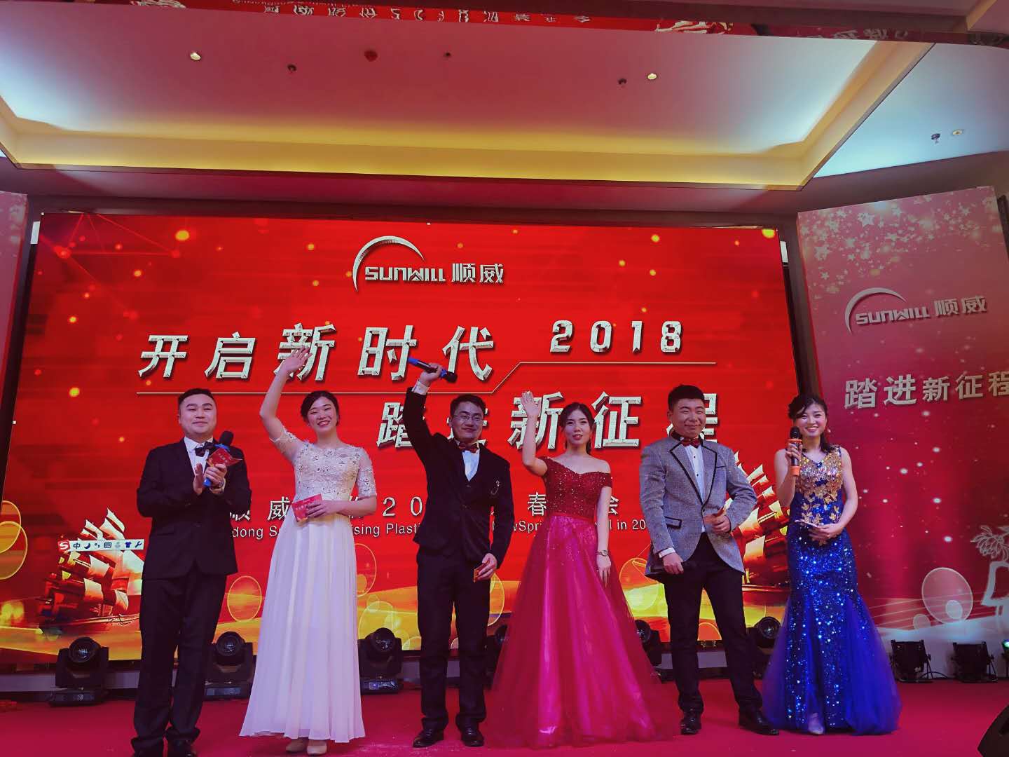 又到了辭舊迎新的年終歲末, 這一刻,連接著順威的過去與未來,凝結(jié)著順威人一年的收獲與希冀,這一刻,我們順威人有一個(gè)共同的情感紐帶。2018年2月8日18:00,順威股份“開啟新時(shí)代 踏進(jìn)新征程”年會(huì)盛典在容桂喜悅酒家隆重舉行。集團(tuán)總部、順德塑料分公司、順德模具分公司、自動(dòng)化裝備公司、杏壇科技園全體員工、供應(yīng)商嘉賓、集團(tuán)領(lǐng)導(dǎo)歡聚一堂,共度聯(lián)歡。