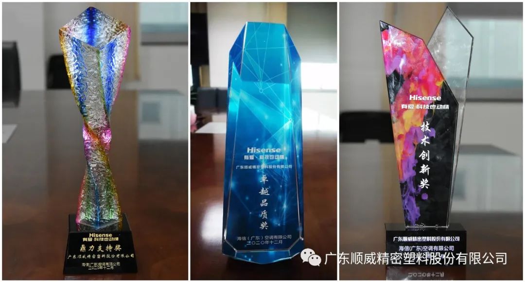 2020年12月11日,海信(廣東)空調有限公司在江門金凱悅酒店國際宴會廳召開主題為“信誠無限,智贏未來”的2021年供應鏈合作創新大會。順威股份董事長/總裁莫綺顏女士受邀參加了此次會議,并代表順威領取2020年“鼎力支持獎”、“技術創新獎”及“卓越品質獎”共三項殊榮。