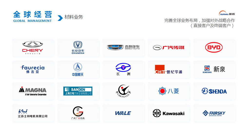 順威材料事業部目前有順德、昆山、武漢三個生產基地,三基地總產能10萬噸/年。